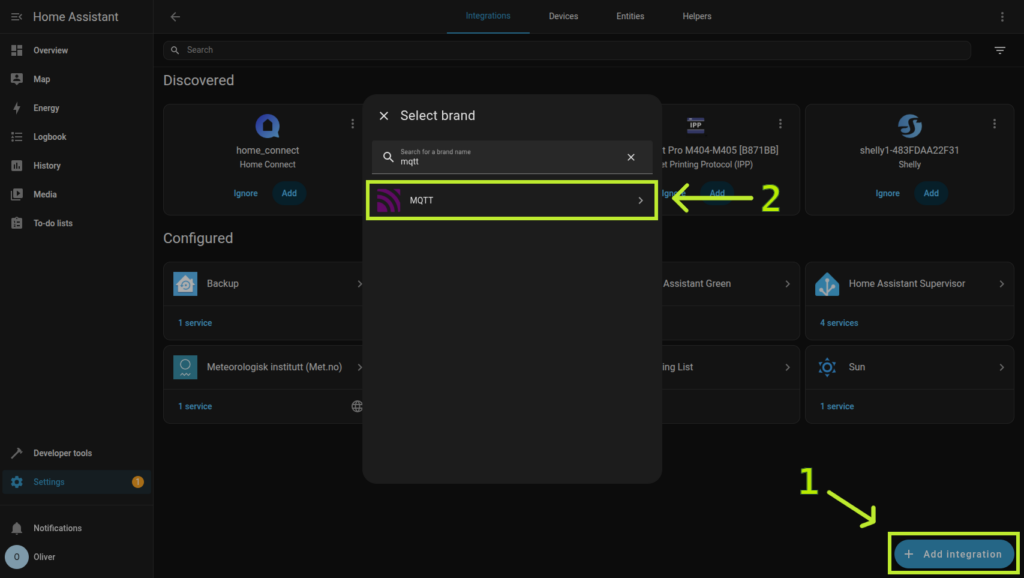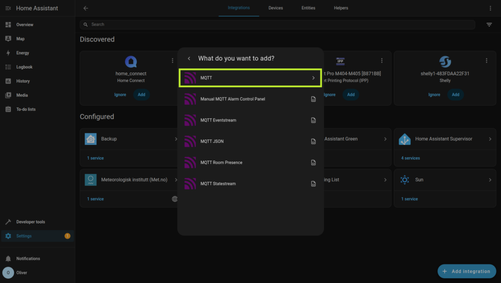 Steg 2: Installera MQTT integration