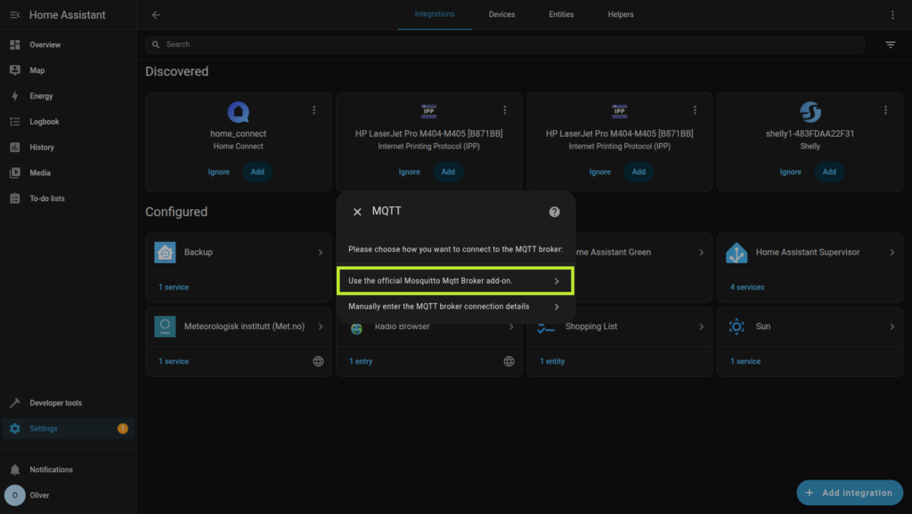 Mqtt brokern kommer nu installeras och du behöver inte ändra några inställningar för integrationen.